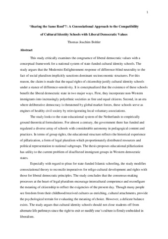 ‘Sharing the Same Roof’?: A Consociational Approach to the Compatibility of Cultural Identity Schools with Liberal Democratic Values