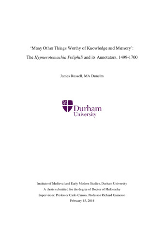 ‘Many Other Things Worthy of Knowledge and Memory’: The Hypnerotomachia Poliphili and its Annotators, 1499-1700