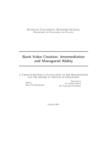 Bank Value Creation, Intermediation and Managerial Ability