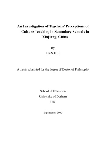 An Investigation of Teachers’ Perceptions of Culture Teaching in Secondary Schools in Xinjiang, China