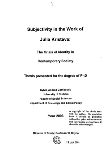 Subjectivity in the work of Julia Kristeva : the crisis of identity in contemporary society.