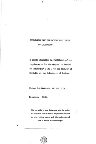 Researches into the Divine Institutes of Lactantius.