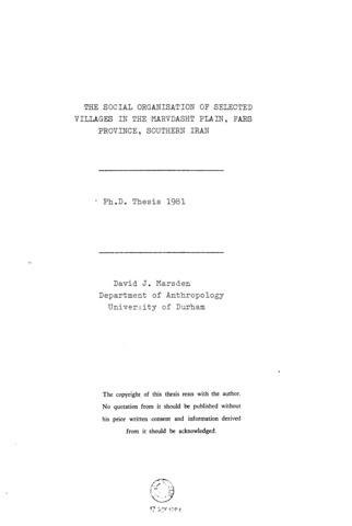 The social organisation of selected villages in the Marvdasht Plain, Fars Province, southern Iran.