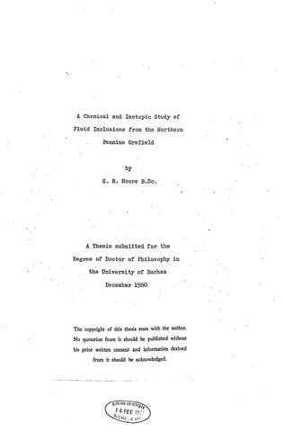 A chemical and isotopic study of fluid inclusions from the northern Pennine orefield.