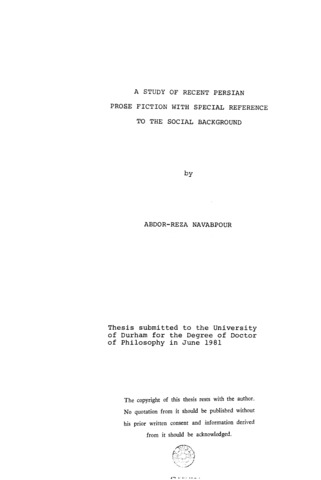 A study of recent Persian prose fiction with special reference to the social background.