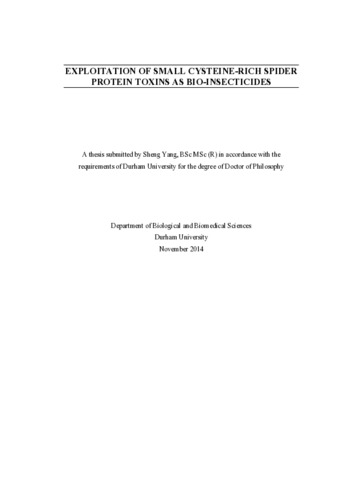 Recombinant fusion protein technology allows specific insecticidal protein and peptide toxins to display activity in orally-delivered bio-pesticides. Here, some small cysteine-rich protein toxins were evaluated as insecticides, including δ-amaurobitoxin-Pl1a (Pl1a) from tangled nest spider (Pireneitega luctuosa), ω-atracotoxin-Hv1a (Hv1a) from funnel web spider (Hadronyche versuta) and κ-theraphotoxin-Ec2a (Ec2a) from Eucratoscelus constrictus, which target insect voltage-gated sodium channels, calcium activated potassium channels and voltage-regulated potassium channels, respectively. Recombinant proteins were produced using the yeast Pichia pastoris as expression host, by combining the coding sequences of the toxin with that of snowdrop lectin ("carrier"), that can deliver these toxins to the central nervous system of the target pest. Experimental results showed the toxins alone had limited or even no activities without being fused to the N-terminal of snowdrop lectin "carrier". Further, fusion of toxins to proteins other than snowdrop lectin also gave products with low or no biological activity. The absence of biological activity suggested that the toxin protein was not folding properly when expressed without fusion to the snowdrop lectin carrier, which meant GNA could not only direct transport of the toxins across the insect gut as a carrier, but also can help toxins to achieve correct folding. For example, the toxin Pl1a and a Pl1a/GNA fusion protein both caused mortality when injected into cabbage moth (Mamestra brassicae) larvae, but the Pl1a/GNA fusion protein was approximately 6 times as effective as recombinant Pl1a on a molar basis. Pl1a alone was not orally active against cabbage moth larvae, but a single 30 μg dose of the Pl1a/GNA fusion protein caused 100% larval mortality within 6 days when fed to 3rd instar larvae, and caused significant reductions in survival, growth and feeding in 4th - 6th instar larvae. To attempt to further improve the folding of recombinant fusion proteins, the predicted Pro-regions of toxins, between the signal peptide and the final mature sequence of the protein were examined. Inclusion of the Pro-region in the expression construct was hypothesised to result in improved folding of the toxin when expressed in P. pastoris. The results proved that the new type fusion protein (Pro-region/toxin/GNA) had much higher biological activity than toxins alone and higher activity than toxin/GNA fusion proteins. In addition, the Pro-region was successfully removed from the Pro-region/toxin/GNA proteins after expression. For example, the LD50 of Pro-Hv1a/GNA was decreased by 12 fold compared to Hv1a/GNA when injected into Mamestra brassicae larvae of different stages of development. Increased biological activity of Pro-Hv1a/GNA when compared to Hv1a/GNA was also observed when the proteins were injected into slugs. The increased biological activity of Pro-Hv1a/GNA on injection was also observed as increased oral toxicity of the fusion protein to insects. A single dose (20 μg) of fusion protein Hv1a/GNA caused no mortality to 5th instar larvae of M. brassicae, or 30% mortality to 3rd instar larvae; in contrast, 20 μg Pro-Hv1a/GNA caused 30% mortality to 5th instar larvae, and 90% mortality to 3rd instar larvae. Fusion proteins have the potential to be a new class of bio-pesticides for commercial application and have potential uses in complementing or replacing existing pesticides. Insecticide-resistant strains of peach potato aphid (Myzus persicae), designated "kdr", "super-kdr" and "kdr+super-kdr" contain mutations in the voltage-gated sodium channel (NaCh). Pl1a/GNA and Pro-Hv1a/GNA fusion proteins have the LC50 values of 0.35 and 0.19 mg ml-1 when fed to wild-type M. persicae. For insecticide-resistant aphids, the LC50 for the Pl1a/GNA fusion protein, which targets NaCh, was increased by 2-6 fold correlating with pyrethroid resistance (wild-type < kdr < super-kdr < kdr+super-kdr strains). In contrast, the LC50 for the Pro-Hv1a/GNA, which targets calcium channels, showed limited correlation with pyrethroid resistance. Therefore, mutations in the sodium channel in pyrethroid-resistant aphids also protect against a fusion protein containing a sodium channel-specific toxin, despite differences in ligard-channel interactions. This may be because changes to the spatial structure of domain II as a result of these mutations presumably also disturb the binding of Pl1a to receptor site 4, in domain II of sodium ion channel. However, mutations in the sodium channel do not confer resistance to a fusion protein targeting calcium channels. The use of fusion proteins with differing targets could delay resistance development in M. persicae.