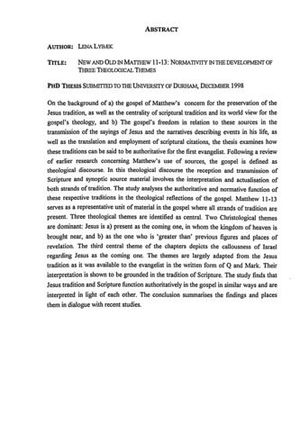 New and old in Matthew 11-13 : normativity in the development of three theological themes.