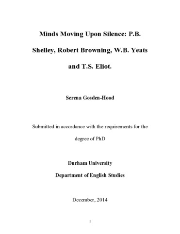 MINDS MOVING ON SILENCE: P.B. Shelley, Robert Browning, W.B. Yeats and T.S. Eliot.