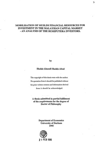 Mobilisation of Muslim financial resources for investment in the Malaysian capital market : an analysis of the Bumiputera investors.