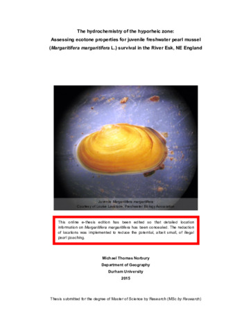 The hydrochemistry of the hyporheic zone: Assessing ecotone properties for juvenile freshwater pearl mussel (Margaritifera margaritifera L.) survival in the River Esk, NE England