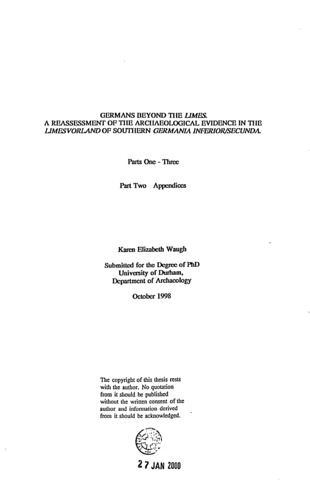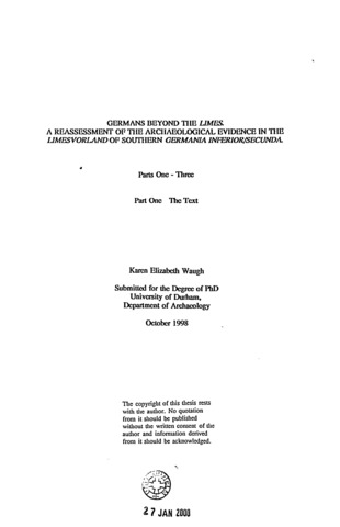 Germans beyond the Limes : a reassessment of the archaeological evidence in the Limesvorland of southern Germania Inferior/Secunda.