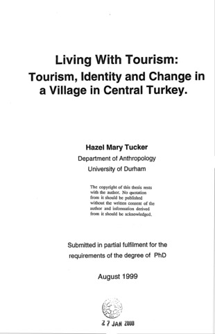 Living with tourism : tourism, identity and change in a village in Central Turkey.