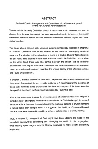 Paul and conflict management in 1 Corinthians 1-6 : a systems approach.