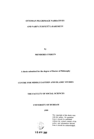 Ottoman pilgrimage narratives and Nabi s Tuhfetu l-Haremeyn.