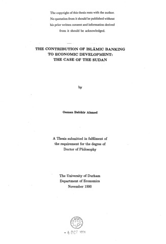 The contribution of Islamic banking to economic development : the case of the Sudan.