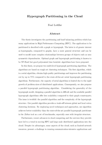 | Uncontrolled Keywords | Hypergraph partitioning, load balancing, distributed systems, cloud computing, high performance computing, parallel algorithms |