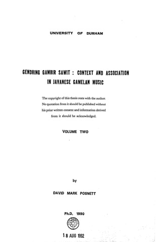 Gendhing Gambir Sawit : context and association in Javanese gamelan music.