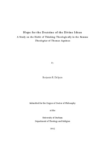Hope for the Doctrine of the Divine Ideas: A Study on the Habit of Thinking Theologically in the Summa Theologiae of Thomas Aquinas