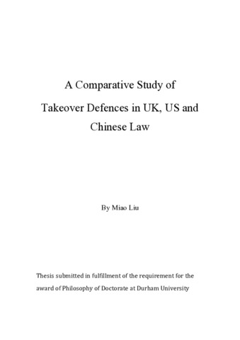 A Comparative Study of Takeover Defences in UK, US and Chinese Law