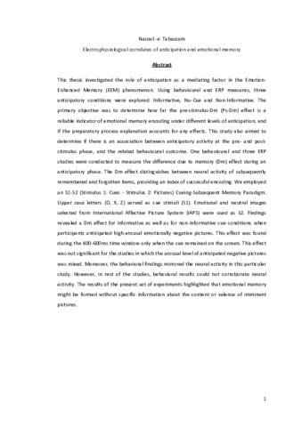 | Uncontrolled Keywords | Anticipation, Emotional memory, ERPs |