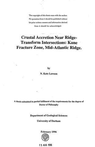 Crustal accretion near ridge-transform intersections : Kane fracture zone, mid-Atlantic ridge.
