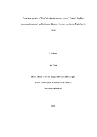 Population genetics of Risso’s dolphins (Grampus griseus), Fraser’s dolphins (Lagenodelphis hosei) and bottlenose dolphins (Tursiops spp.) in the North Pacific Ocean