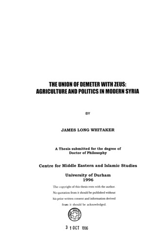 The union of Demeter with Zeus : agriculture and politics in modern Syria.