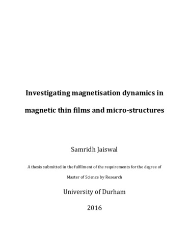 Investigating magnetisation dynamics in magnetic thin films and micro-structures