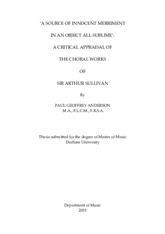 'A Source of Innocent Merriment in an Object all Sublime': A Critical Appraisal of the Choral Works of Sir Arthur Sullivan.