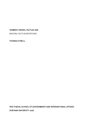 Hobbes's Moral Factualism: Reason, Facts, and Intentions