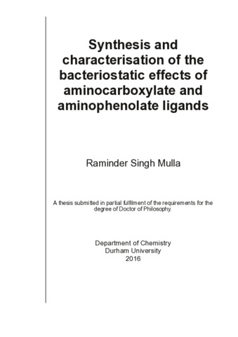 Synthesis and characterisation of the bacteriostatic effects of aminocarboxylate and aminophenolate ligands