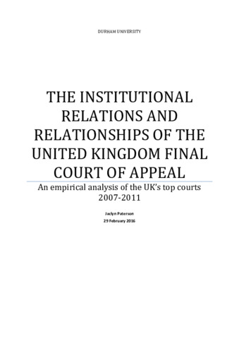 The Institutional Relations and Relationships of the United Kingdom Final Court of Appeal; An empirical analysis of the UK's top courts 2007-2011