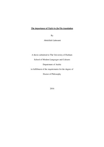 | Uncontrolled Keywords | PhD Qur'ān Translation Tafsīr |