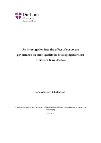 An investigation into the effect of corporate governance on audit quality in developing markets: Evidence from Jordan