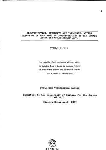 Identification, interests and influence : voting behaviour in four English constituencies in the decade after the Great Reform Act.