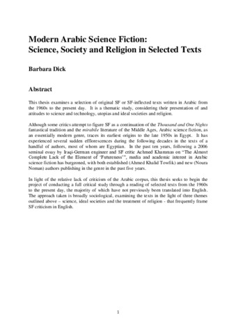 Modern Arabic Science Fiction: Science, Society and Religion in Selected Texts