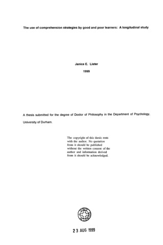 The use of comprehension strategies by good and poor learners : a longitudinal study.