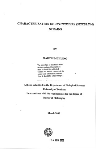 Characterization of Arthrospira (Spirulina) strains.