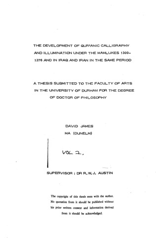 The development of quranic calligraphy and illumination under the Mamlukes 1300-1376 and in Iraq and Iran in the same period.