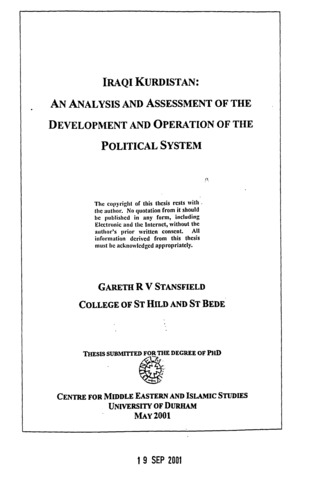 Iraqi Kurdistan : an analysis and assessment of the development and operation of the political system.
