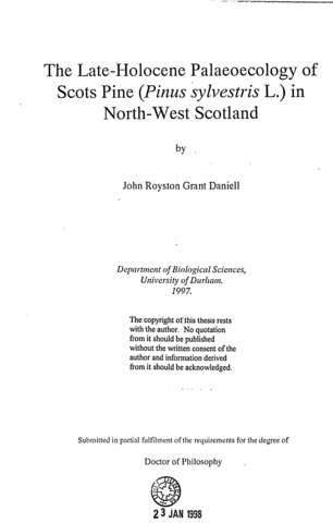 The Late-Holocene palaeoecology of Scots pine (Pinus sylvestris L.) in north-west Scotland.