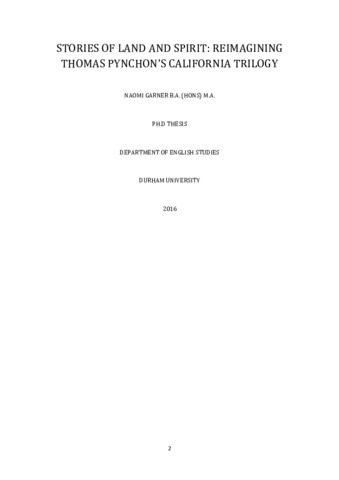 STORIES OF LAND AND SPIRIT: REIMAGINING THOMAS PYNCHON’S CALIFORNIA TRILOGY