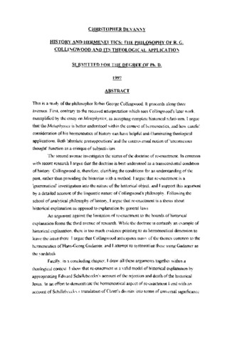 History and hermeneutics : the philosophy of R.G. Collingwood and its theological application.