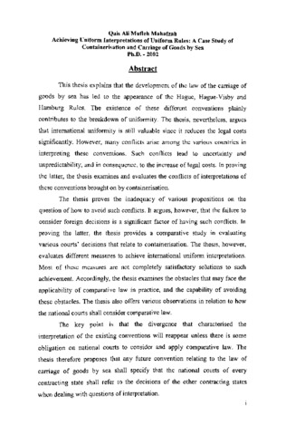 Achieving uniform interpretations of uniform rules : a case study of containerisation and carriage of goods by sea.