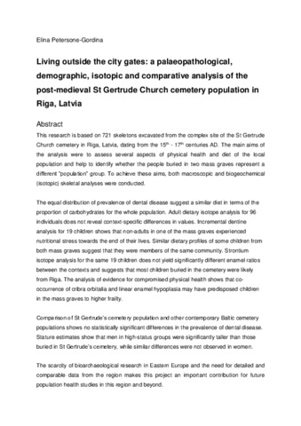 Living outside the city gates: a palaeopathological, demographic, isotopic and comparative analysis of the post-medieval St Gertrude Church cemetery population in Riga, Latvia