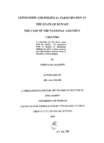Citizenship and political participation in the State of Kuwait : the case of National Assembly (1963-1996).