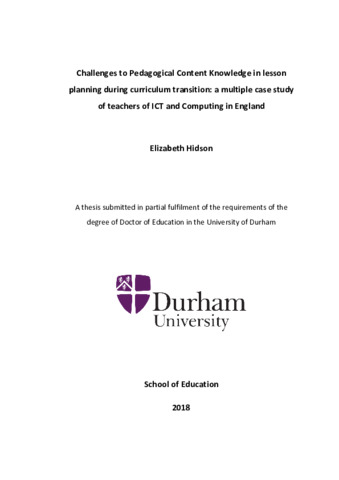 Challenges to Pedagogical Content Knowledge in lesson planning during curriculum transition: a multiple case study of teachers of ICT and Computing in England.