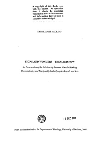 Signs and wonders - then and now : an examination of the relationship between miracle-working commissioning and discipleship in the synoptic gospels and Acts