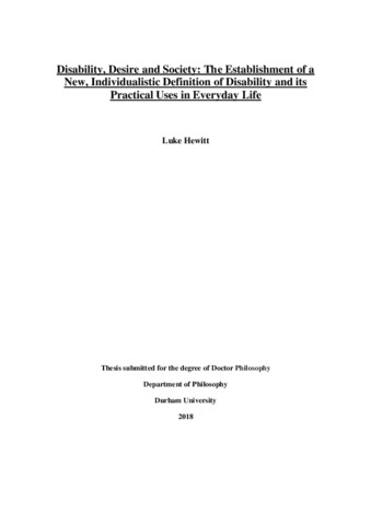 Disability, Desire and Society: The Establishment of a New, Individualistic Definition of Disability and its Practical Uses in Everyday Life