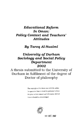 Educational reform in Oman : policy context and teachers' attitudes.
